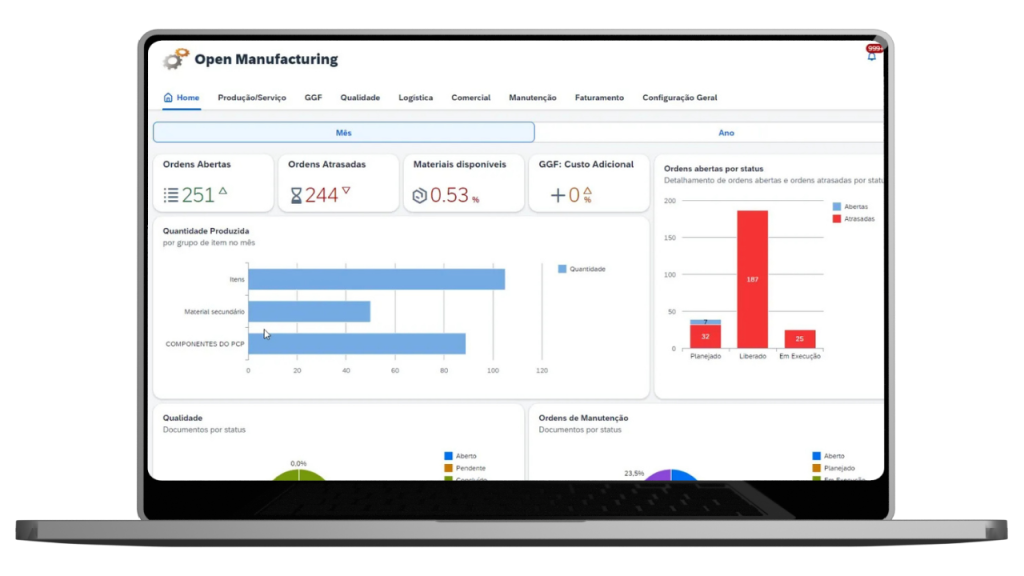 Com o OPEN Manufacturing, oferecemos um add-on completo e nativo em Fiori para o SAP, voltado para controle e gestão de manufatura.