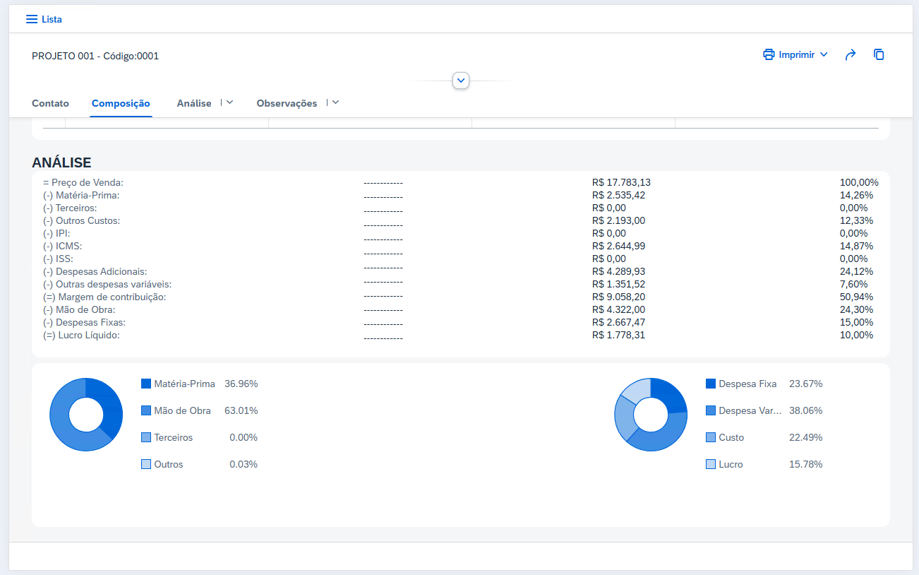 Acesse online os custos de Matéria Prima e Mão de Obra.